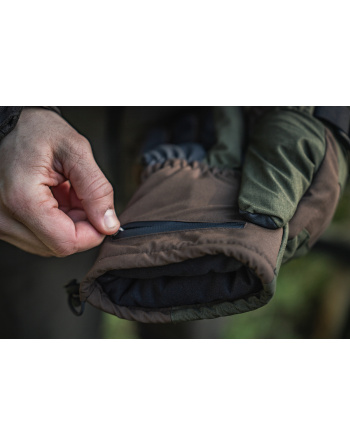 Kombinacja wysokiej izolacji termicznej, rozciągliwości oraz ochrony przed czynnikami atmosferycznymi powoduje, że dłonie myśliwego pozostaną ciepłe i suche niezależnie od warunków pogodowych.