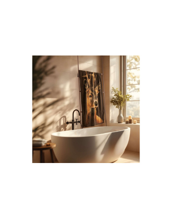 Kolekcja ręczników dla miłośników natury powstała z myślą o tych, którzy chcą przenieść piękno świata przyrody do swojej codzienności. Ręcznik KOZIOŁ zachwyca realistycznym nadrukiem przedstawiającym subtelną sylwetkę leśnego zwierzęcia. Jego spojrzenie i naturalne detale oddane są z niezwykłą precyzją. Stonowana, elegancka kolorystyka wprowadza do wnętrza spokój i harmonię.