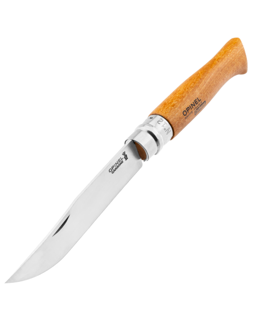 Klasyczny i wyjątkowo lekki model francuskiej firmy Opinel, produkującej noże już od ponad 100 lat. Cienkie ostrze z płaskim szlifem wykonane jest ze stali węglowej, charakteryzującej się łatwością ostrzenia oraz długim trzymaniem ostrości. Ponieważ stal węglowa wymaga nieco większej opieki, dlatego po każdym użyciu należy ją dokładnie wysuszyć i przetrzeć oliwką - zastosowanie się do tej prostej wskazówki, uchroni nasze ostrze od rdzy.