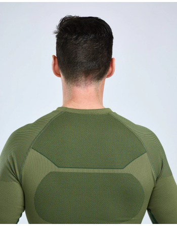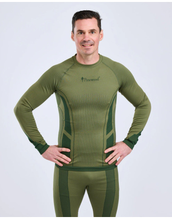 Warstwa bazowa ma ścisłe dopasowanie i zapewnia lepsze dopasowanie do ciała (body mapping), co zapewnia większy komfort. Dopasowanie do ciała (body mapping) to zróżnicowana konstrukcja materiału w odpowiednich miejscach – wentylacja tam, gdzie się pocisz, i ciepło tam, gdzie marzniesz. Ubranie współpracuje z ciałem, a nie działa na nie. Ubranie jest również bezszwowe po bokach dla większego komfortu, a sweter ma okrągły dekolt. Rezultatem jest bielizna termoaktywna z wieloma technicznymi rozwiązaniami, która zapewnia ciepło i świeżość przez cały dzień.