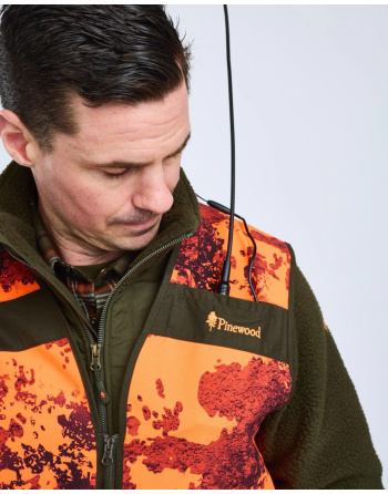Wytrzymała i funkcjonalna, oddychająca kamizelka myśliwska z powłoką hydrofobową bez PFC, dostępna w ekskluzywnym, wizualnym wzorze kamuflażu True Timber®, opracowanym specjalnie dla Pinewood. Posiada dwie duże kieszenie przednie zapinane na zamek oraz kieszeń na radio na lewej piersi. Lekka, a zarazem praktyczna kamizelka do polowań i treningów, wyposażona we wszystkie niezbędne funkcje.