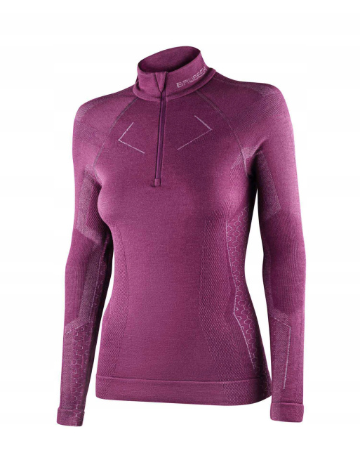 ✅BRUBECK EXTREME WOOL | LS1609W koszulka, bluza | damska wełniana termiczna koszulka z długim rękawem została wykonana w technologii bezszwowej z dwuwarstwowej oddychającej dzianiny o dużej grubości. Odzież merino nie przejmuje nieprzyjemnych zapachów i jest miła w dotyku. Bluza posiada zamek błyskawiczny w 1/3 długości koszulki, który zwiększa i wspomaga skuteczną wentylację w trakcie intensywnej aktywności. W warstwie wewnętrznej zastosowano przędzę poliamidową a warstwie zewnętrznej 100% dzianinę wełnianą uzyskaną z najwyższej jakości włókien wełny owiec merynosów. Zalety wełnianej bielizny termoaktywnej docenią szczególnie osoby aktywne szukające uniwersalnego produktu na zmienne warunki atmosferyczne. Dwuwarstwowa konstrukcja pozwala uzyskać wyjątkowe właściwości termoregulacyjne, które ochronią organizm przed wyziębieniem i przegrzaniem. Warstwa poliamidowa bardzo szybko i skutecznie odprowadzi wilgoć a zewnętrzna wełniana warstwa, zabezpieczy przed utratą ciepła. Wełna ma zdolność do "pochłaniania" wilgoci do 35% swojej masy ale nie pozostawia efektu mokrej "zimnej" odzieży. Dzięki lanolinie wilgoć nie przenika do środka włosa a jedynie do kanalików między poszczególnymi włosami. Stąd bardzo szybko jest odparowana dzięki czemu uzyskujemy efekt suchej skóry. Duża elastyczność wełny sprawia, że koszulka nie zmienia swojego kształtu i idealnie dopasowuje się do ciała.