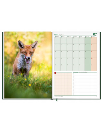 Kalendarz zdobią zdjęcia inspirowane przyrodą i tematyką łowiecką, które wprowadzają wyjątkowy klimat myśliwski do każdego dnia. Twarda, solidna oprawa zapewnia trwałość, a eleganckie wykończenie czyni go nie tylko praktycznym narzędziem, ale również ozdobą i przedmiotem kolekcjonerskim.